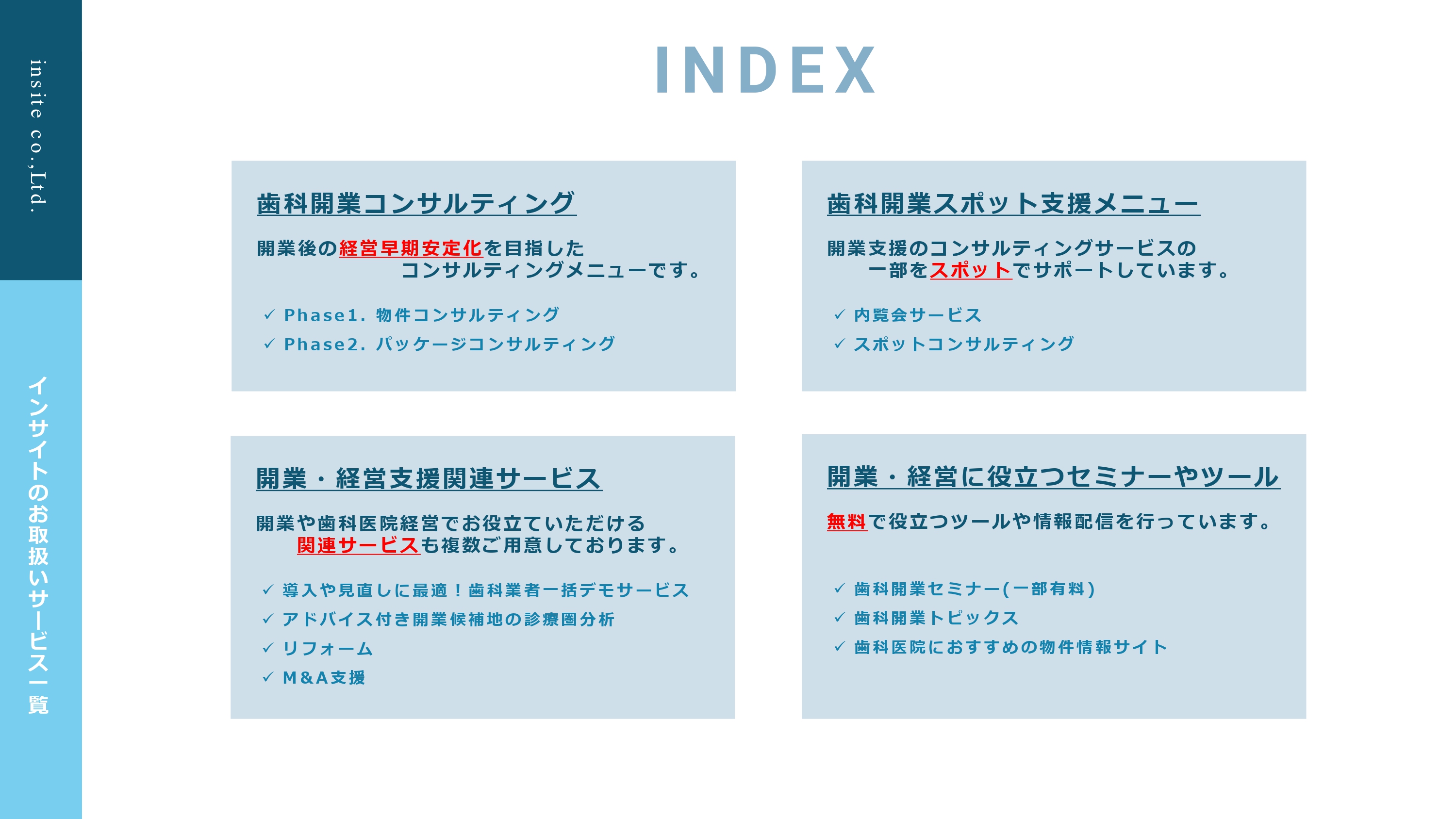 歯科開業をトータルサポート!インサイトのサービス一覧